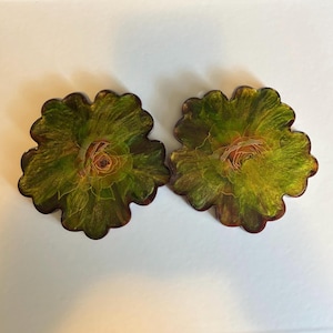 Floral Resin Coaster Set – Iridescent Green Coasters with Silver Leaf Accent and Scalloped Edge