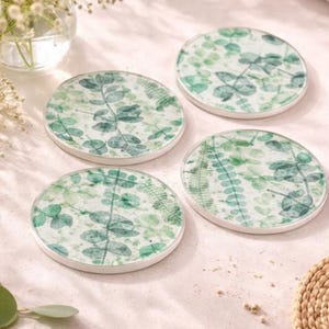 Botanical Coasters Set of 4 Handmade Jesmonite Coasters Resin Coated Green Leaf Coasters Nature Home Decor Gift