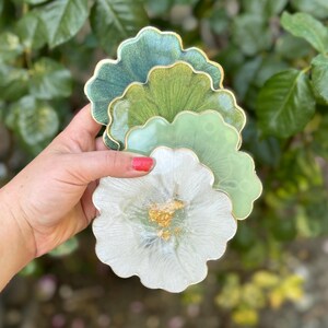 Green flower coasters, handmade epoxy resin coasters with gold accents, resin coaster set, gifts for home with custom colors